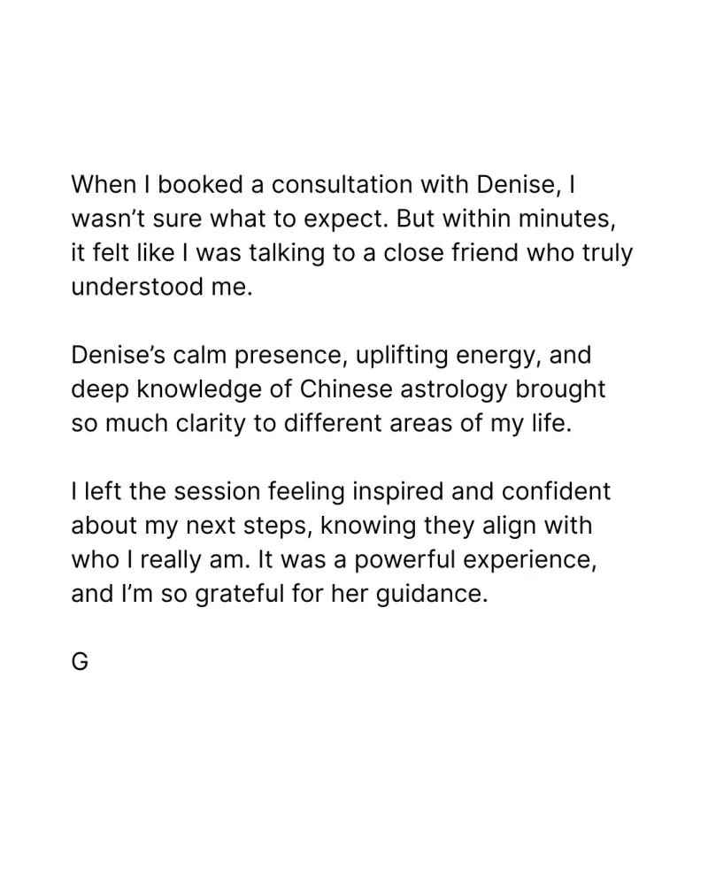 Chinese astrology isn’t about prediction. It’s about alignment. It helps you see who you really are at your core, and who and what naturally supports you. So then you can move forward in a way that feels authentic, not forced.